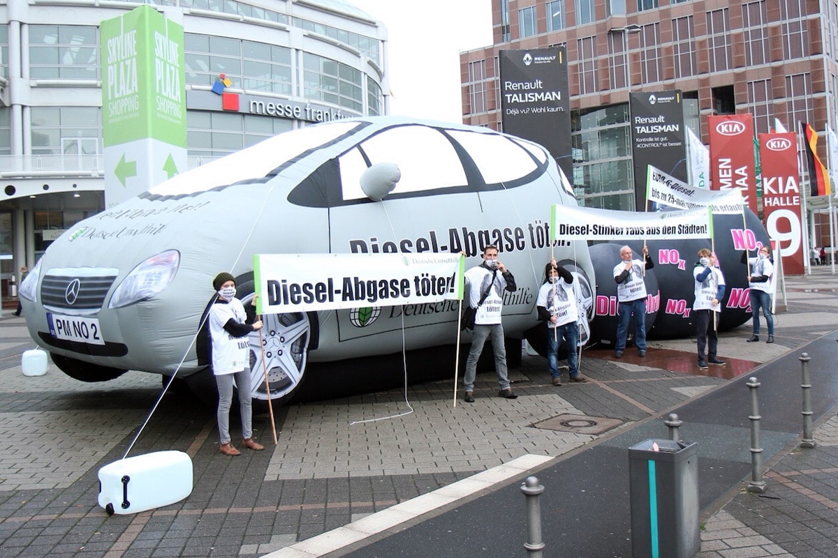 Für die Deutsche Umwelthilfe haben wir in nur 4 Wochen ein aufblasbares Auto in den Maßen ca. 8 m x 4,5 m und einer Abgaswolke in ca. 6 m Länge und ca. 3,5 m Höhe erstellt. Das Projekt wurde am 17.9.2015 auf der IAA in Frankfurt vorgeführt. Die Message der DUH: „Dieselabgase töten!“. Das Auto stand am Eröffnungstag am Haupteingang der IAA und zog viel Aufmerksamkeit auf sich.