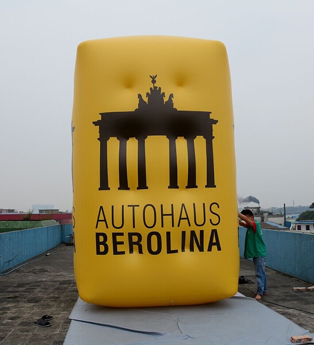 Der aufblasbare Kubus is ca. 4,50 m hoch und 2,50 m breit.