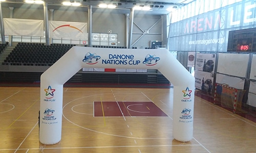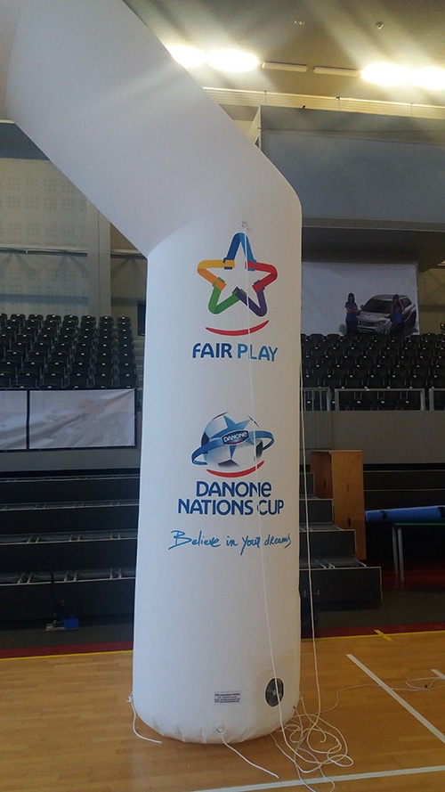 Wir haben einen neuen aufblasbaren Einlaufbogen für den Danone Nations Cup erstellt. Das Innenmaß des bogens ist 6m x 4m die Tubes haben einen Durchmesser von 1,10m. Unserr Einlaufbögen sind voll bedruckbar auf PVC oder Polyester. Gerne erstellen wir Ihnen ein Angebot für aufblasbare Torbögen in allen individuellen Größen und Formen. Rufen Sie uns gerne an.