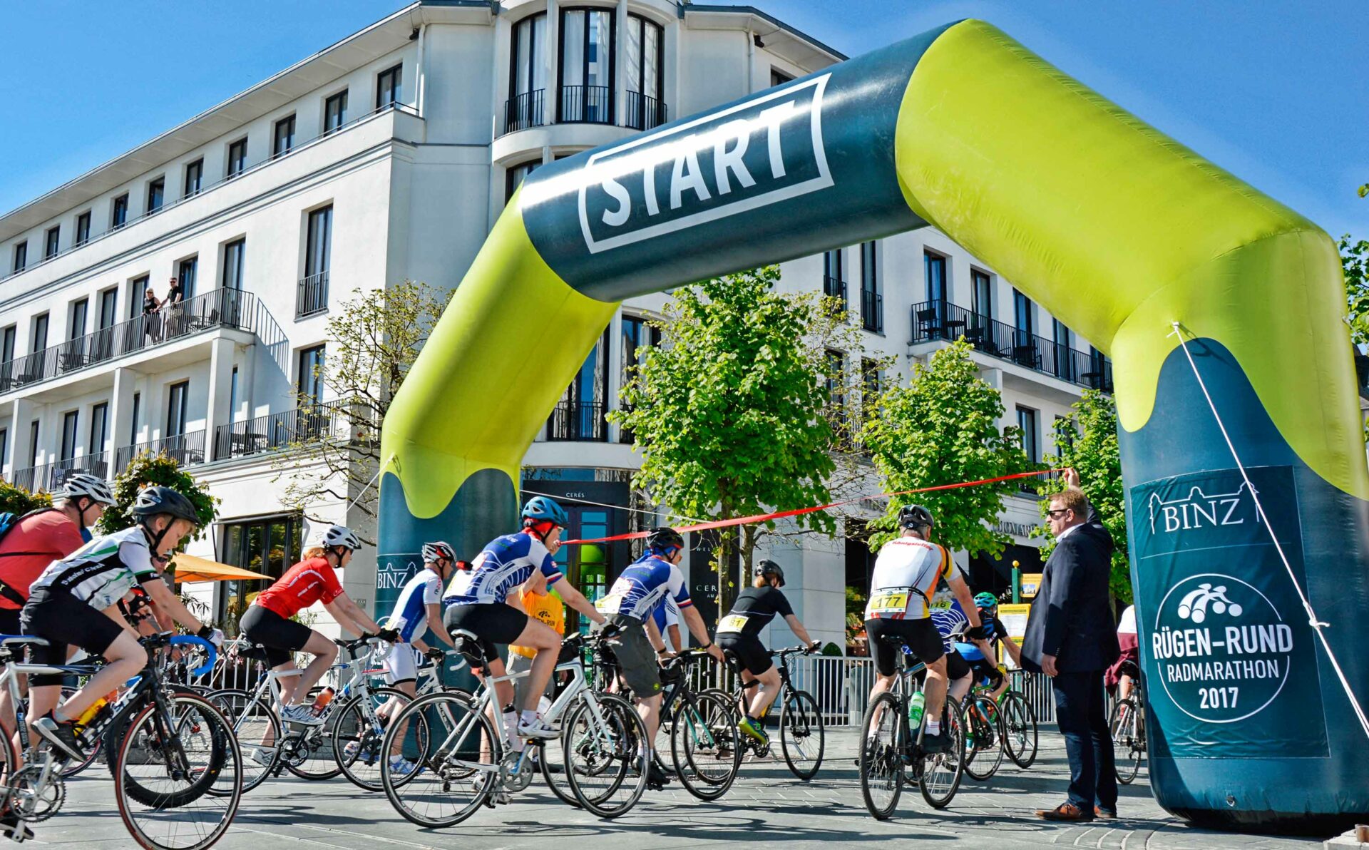 Zum Anlass des Rügen-Rund Radmarathons 2017 haben wir für unseren Kunden einen aufblasbaren Start-Ziel-Bogen mit Wechselbannern angefertigt. Material: PVC 430 gr/qm voll bedruckt. Die Wechselbanner an den Seiten werden für drei unterschiedliche Veranstaltungen eingesetzt.