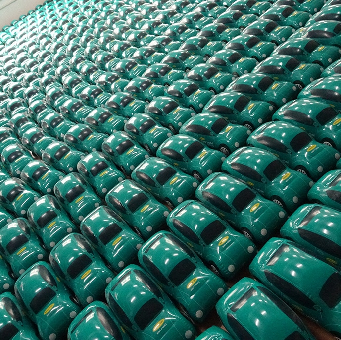Ein eigener individueller Fuhrpark aus aufblasbaren Autos gefällig? Gerne erstellen wir Ihnen individuelle aufblasbare Figuren aus PVC. Das PVC 0,18 mm wurde in individueller Pantone hergestellt und dann digital bedruckt. Gerne beraten wir Sie unverbindlich über die Herstellung individueller aufblasbarer Werbemittel.