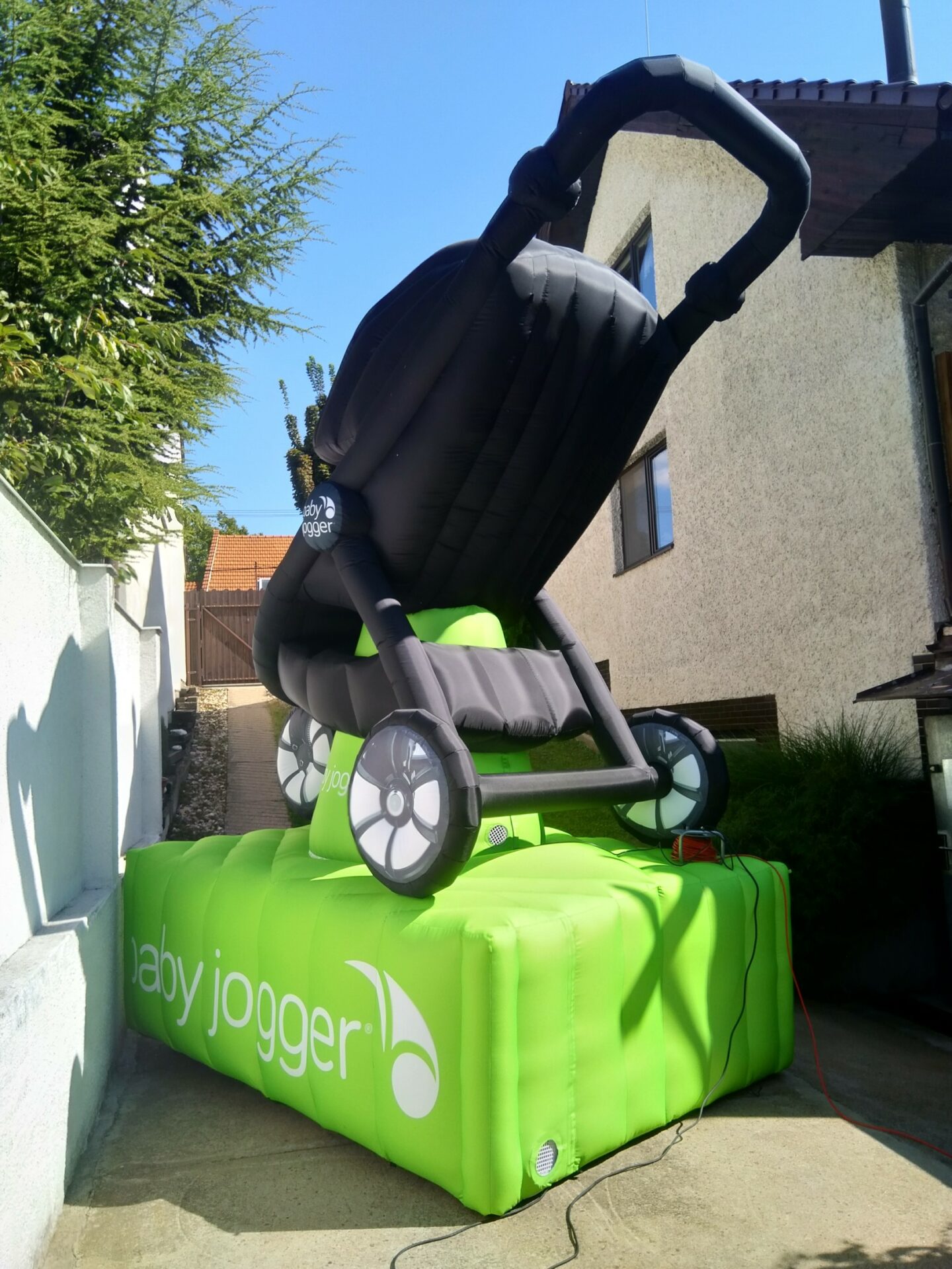 Für einen Messeauftritt hat unser Kunde sich eine individuelle Produktnachbildung gewünscht – gesagt, getan. Wir haben einen aufblasbaren Kinderwagen umgesetzt. Dieser wurde aus Polyester b1 in 260g/m² genäht und ist in den Originalfarben gedruckt worden. Die Gesamthöhe beträgt ca. 3,50 m. Sie suchen nach einer aufblasbaren Produktnachbildung? Melden Sie sich gerne bei uns.