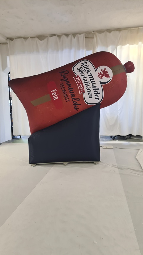 Für unseren Kunden Rügenwalder haben wir den absoluten Klassiker des Hauses in ein unübersehbares Werbeobjekt verwandelt: Eine originalgetreue, aufblasbare Teewurst im XXL-Format.