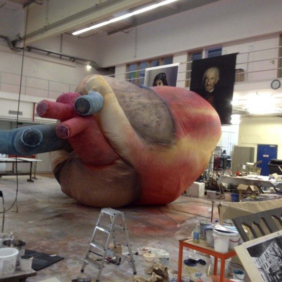 The heart is approx. 6 m in size, was delivered by us and colored through the painting office in the state theater Stuttgart.