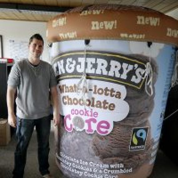 The summer can come – our inflatable sundae from Ben & Jerry’s is 2.50 m big and advertises for the new Ben & Jerry’s ice cream “Speculoos Specu-Love”.