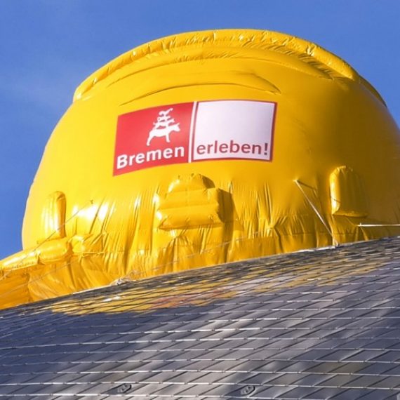 An inflatable construction helmet is used by the Universum Bremen as an announcement for the rebuilding measures beginning on November 3rd 2015. The construction helmet is illuminated from the inside … lesen Sie mehr