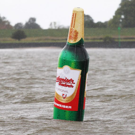 For a sailing regatta series we have produced three inflatable regatta buoys as beer bottles. The barrels are fully printed with Budweiser.