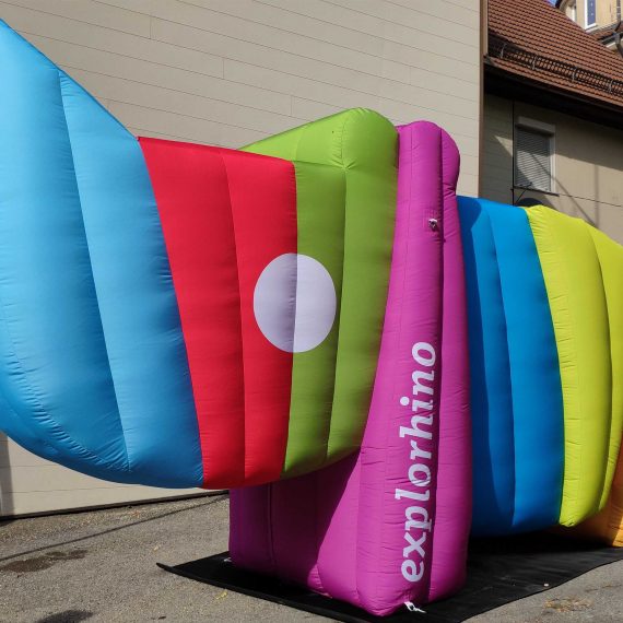 We have produced an inflatable rhino for the Explorhino Science Center. The rhino is the logo of Explorhino. Material is 300 gr/qm polyester b1, fully printed, dimensions: 3.00 m long … lesen Sie mehr