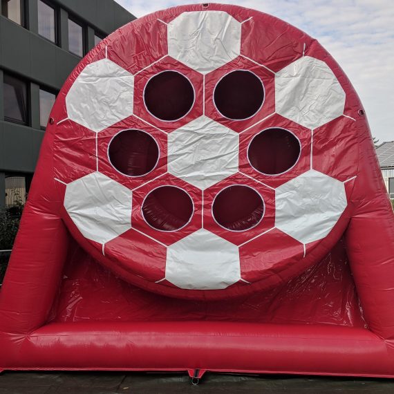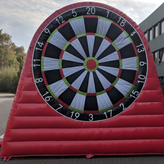 For the Frankfurter Sparkasse we produced a 4m high inflatable dartboard. On the back of the dartboard there is a goal wall.