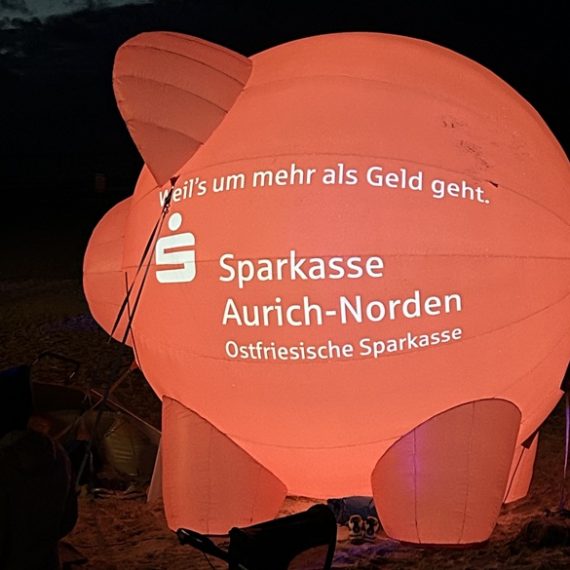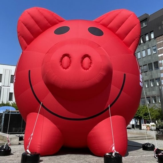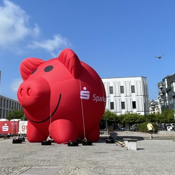 Unser 7,5-Meter-Sparschwein als Star der Sparkassen-Eröffnung