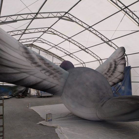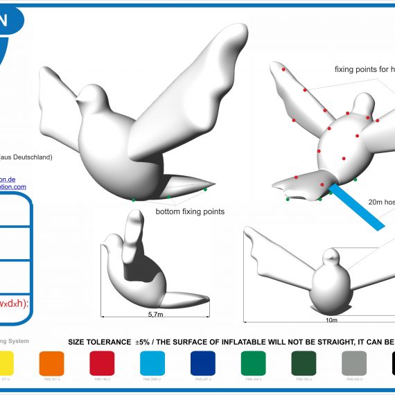Für ein Theater in Helsinki (Finnland) haben wir eine aufblasbare Riesentaube als aufblasbares Bühnenbild hergestellt. Die Taube wurde auf Polyester 240 gr/qm mit b1-Zertifikat genäht und mit Airbrush bemalt. Die … lesen Sie mehr