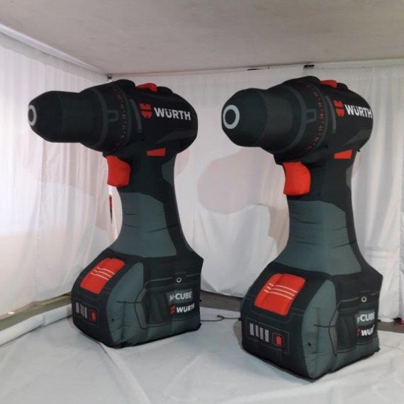 Wir haben wieder einmal aufblasbare Akkuschrauber produziert. Die Nachbildungen sind 2,50 m hoch, aus Polyester genäht und vollflächig nach Vorlage des Originals bedruckt worden.