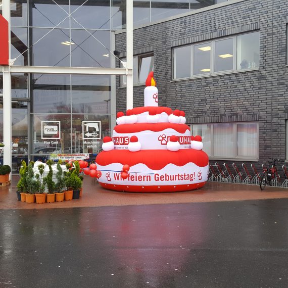 Für Bauhaus in Münster haben wir eine aufblasbare Riesen-Torte in 4m Höhe und knapp 4m Durchmesser gebaut. Die Torte wurde voll bedruckt und mit einer Kerze und mit Sahnehäubchen ausgestattet. … lesen Sie mehr