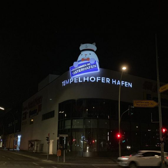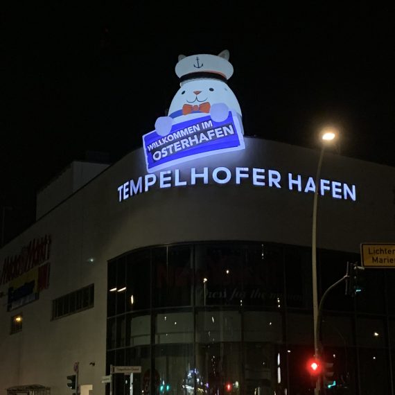 Für das Shoppingcenter Tempelhofer Hafen haben wir eine aufblasbare Dachwerbung in Form eines Osterhasens produziert. Der über 5m hohe Osterhase ist von innen beleuchtbar und so auch im Dunkeln von … lesen Sie mehr