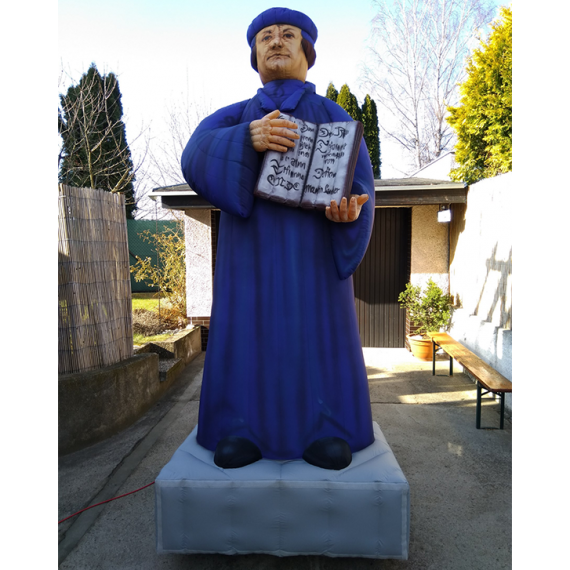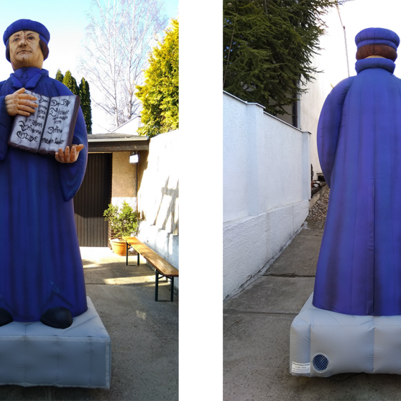 Wir haben einen aufblasbaren Martin Luther in 3m Höhe produziert. Material ist Polyester mit b1 Zertifikat. Das gesamte Objekt wurde mit Airbrush bemalt.