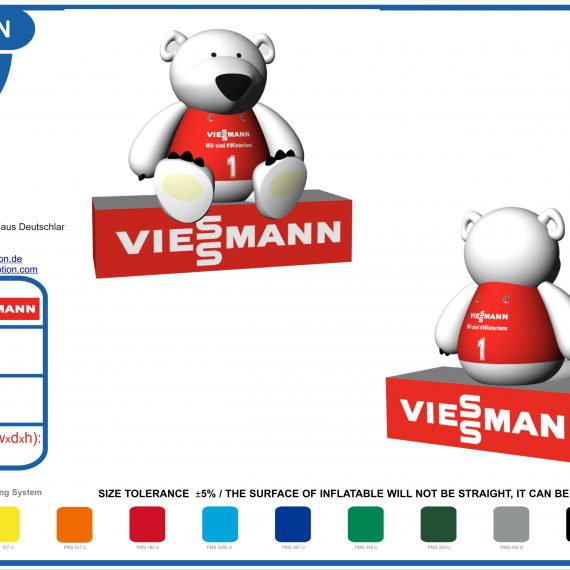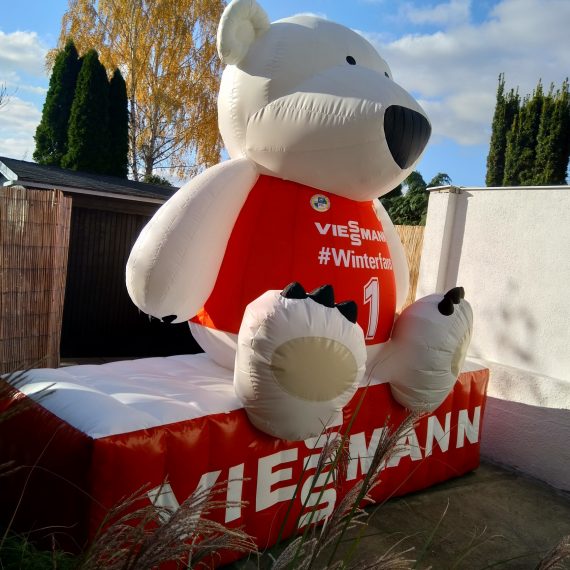 Für unseren Kunden Viessmann haben wir erneut einen aufblasbaren Eisbären produziert. Der Eisbär sitzt auf einem aufblasbaren Sockel mit Kundenlogo und hat ein austauschbares bedrucktes Laibchen an. Ebenfalls kann man … lesen Sie mehr