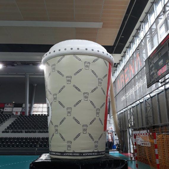 Für eine AVIA-Tankstelle haben wir einen neuen Hingucker für’s Dach gebaut: ein 5,00 m hohen Kaffeebecher auf einem 1,00 m hohen aufblasbaren Sockel wird bald in 79837 Häusern in Baden … lesen Sie mehr