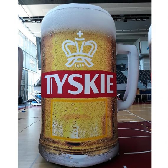 Aufblasbare Bierkrüge in 4,00 m und in 7,00 m Höhe aus Polyester B1 voll bedruckt.