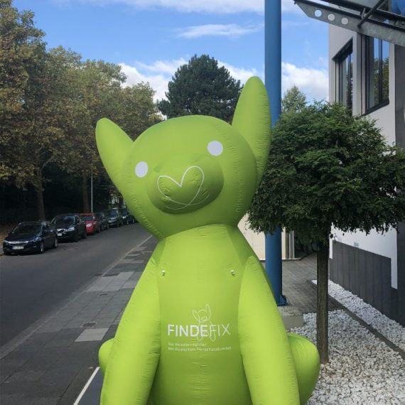 Für den Deutscher Tierschutzbund e.V. haben wir das Maskottchen „Findefix“ als aufblasbare Figur nachgestellt. Diese ist ca. 4,00 m hoch und ist aus Polyester 300 g/m².