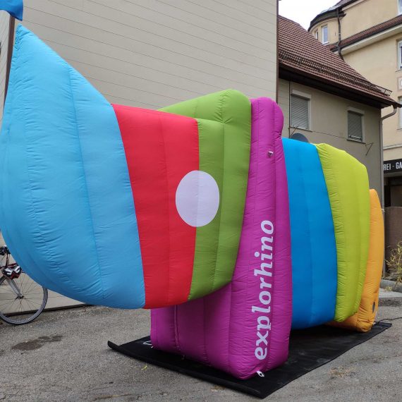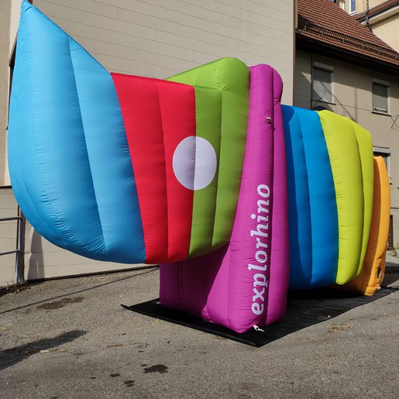 Für das Science Center Explorhino haben wir ein aufblasbares Nashorn hergestellt. Das Nashorn ist das Logo von Explorhino. Material ist 300 gr/qm Polyester b1, voll bedruckt, Maße: 3,00 m lang … lesen Sie mehr
