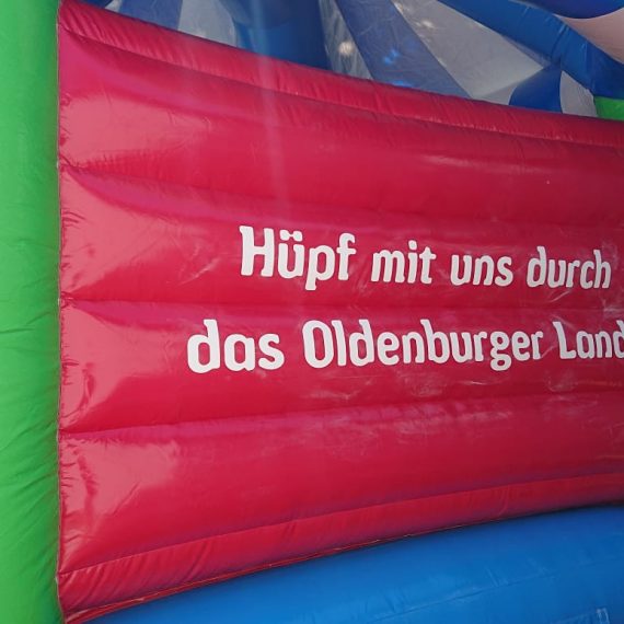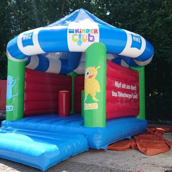 Für die Nordwest-Zeitung in Oldenburg haben wir eine individuelle Hüpfburg gebaut. Die Hüpfburg wurde nach Vorgaben des Kunden designed und bedruckt. Die Größe der Hüpfburg: 5x4m Höhe 4,9 m