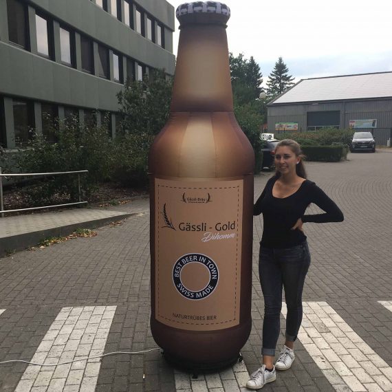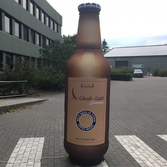 Für Gässli-Bräu in der Schweiz haben wir eine aufblasbare Bierflasche in 2,50 m Höhe hergestellt. Die Flasche ist aus Polyester b1, hat einen Holzstandfuß mit Dauergebläse und LED-Beleuchtung und ist … lesen Sie mehr