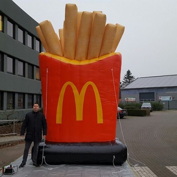 Erneut haben wir eine aufblasbare Pommes-Tüte in 5 m für ein McDonald`s Restaurant hergestellt. Die aufblasbare Porduktnachbildung soll auf das Restaurant in Sigmaringen aufmerksam machen. Die aufblasbare Pommes-Tüte wird … lesen Sie mehr