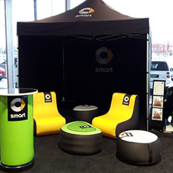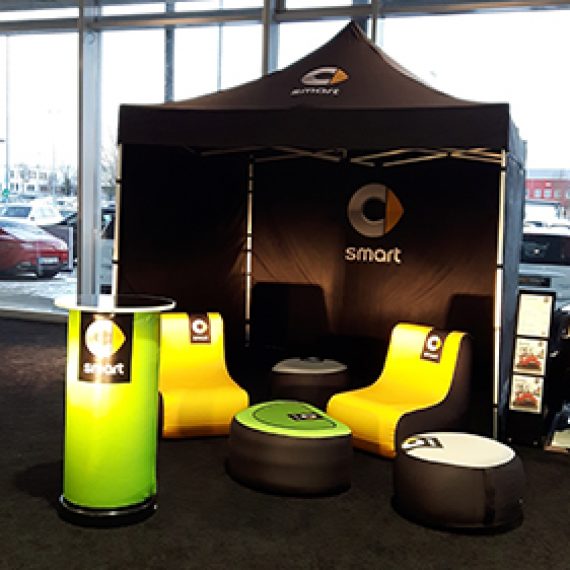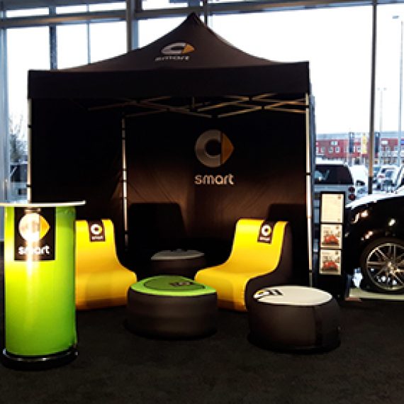 Für unseren Kunden KBU haben wir aufblasbare Möbel für Smart geliefert. Die Möbel sind luftdicht und mit Polyestercover umzogen.