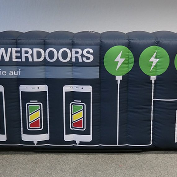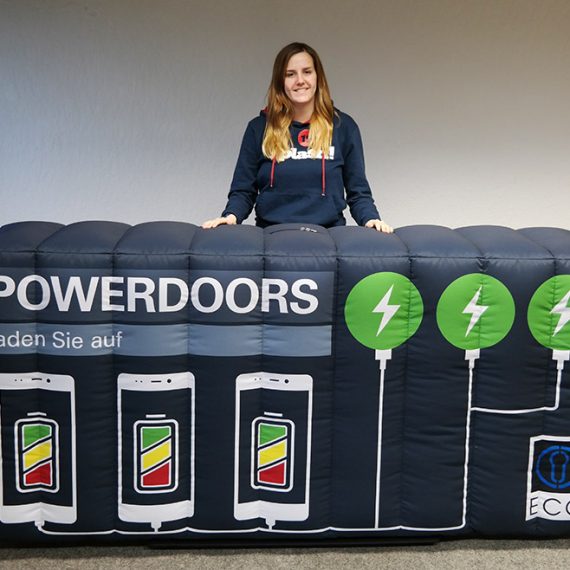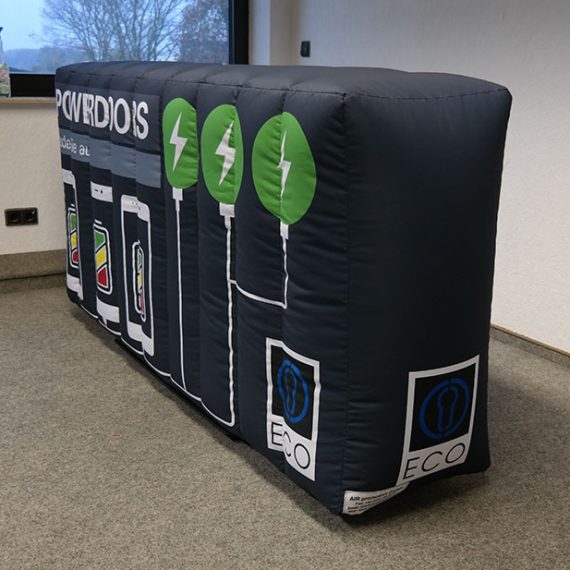 Wir haben eine aufblasbare Theke für ECO-Powerdoors gebaut. Die Theke hat einen Holzstandfuß und funktioniert mit Dauergebläse, sie ist individuell bedruckt und hat die Maße 2,00m x 0,80m x 0,50m. … lesen Sie mehr