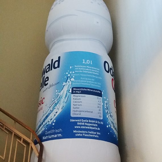 Wir haben eine aufblasbare Wasserflasche in 5 Metern Höhe hergestellt. Die Flasche ist aus Polyester und wurde hochwertig im Sublimationsdruckverfahren bedruckt. Die Riesenflasche hat einen Holzstandfuß, auf dem das Dauergebläse … lesen Sie mehr
