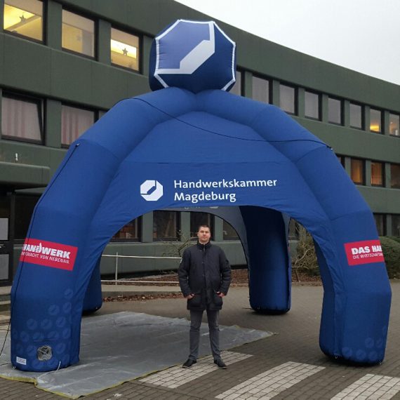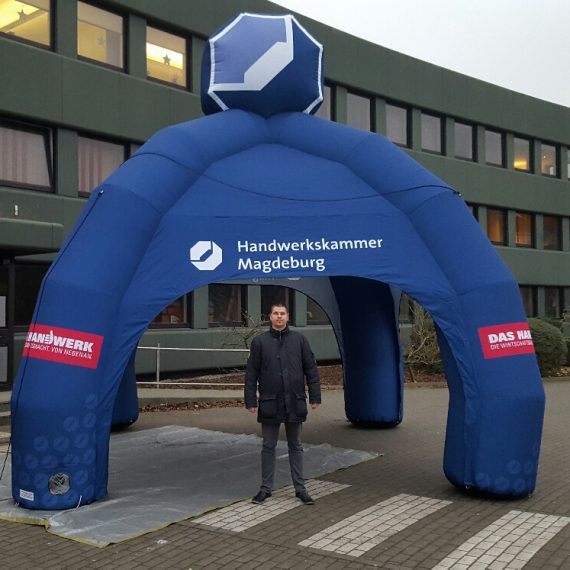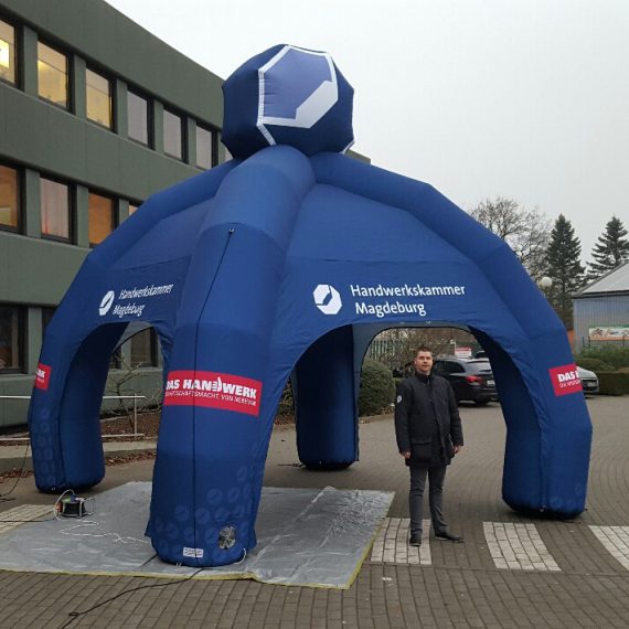 Wir haben ein aufblasbares Zelt für die Handwerkskammer gebaut. Es hat die Maße 5x5m. Es wurde voll individuell bedruckt, hat 3 mit Reißverschluss einziehbare Wände und zusätzlich eine individuelle Form … lesen Sie mehr