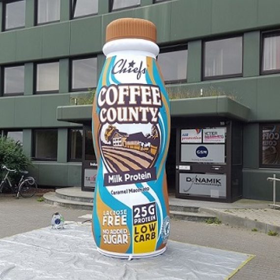 Für unseren Kunden Chiefs haben wir die zweite aufblasbare Flasche in 4 m Höhe erstellt. Die Form der Flasche ist natürlich individuell auf das Original abgestimmt und der Sublimationsdruck auf … lesen Sie mehr