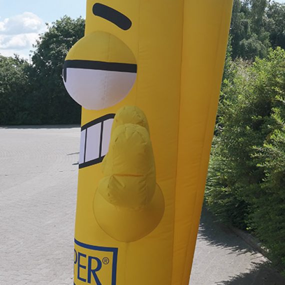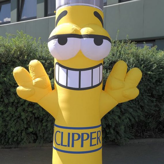 Unsere aufblasbare Figur-Clippermann ist wohl das coolste Feuerzeug der Welt. Clippermann ist ca. 2,65 m groß bei einem Durchmesser von ca. 0,60 m.