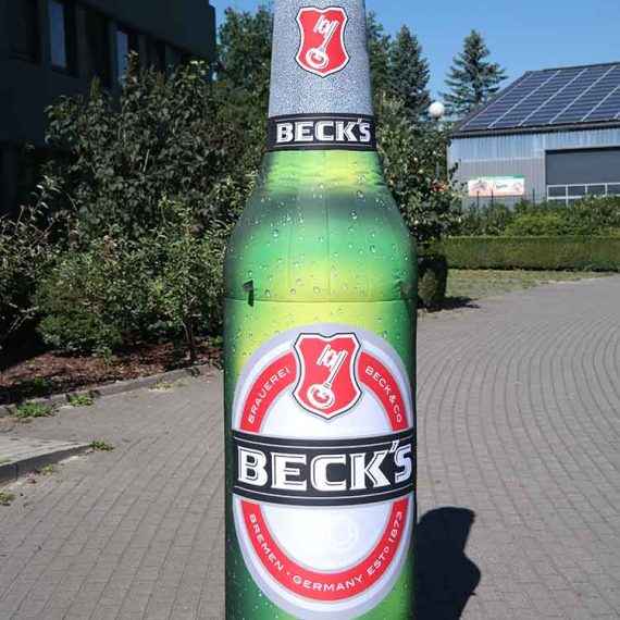 Wir haben eine aufblasbare Bierflasche in 2,5 Meter Höhe hergestellt, die von Innen beleuchtet werden kann. Die Flasche wurde aus B1-zertifiziertem Polyester hergestellt und hochwertig im Sublimationsdruckverfahren bedruckt. Zusätzlich haben … lesen Sie mehr
